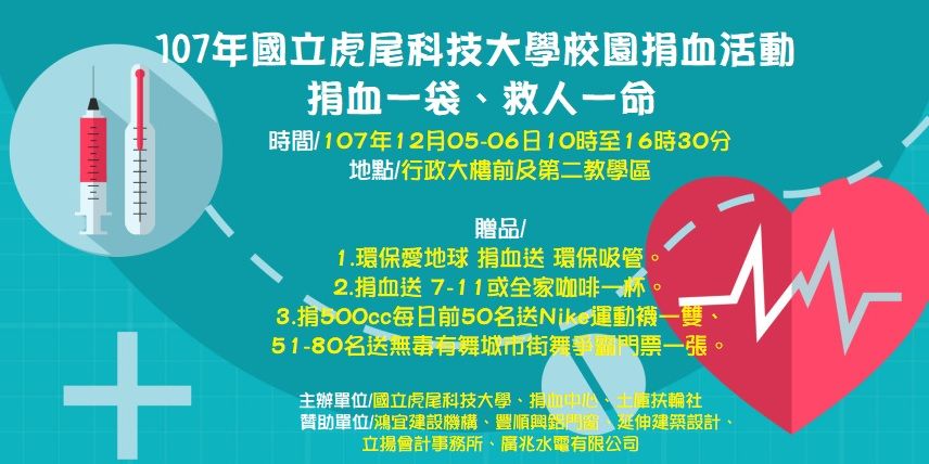 主辦單位:虎尾科技大學 捐血中心 土庫扶輪社