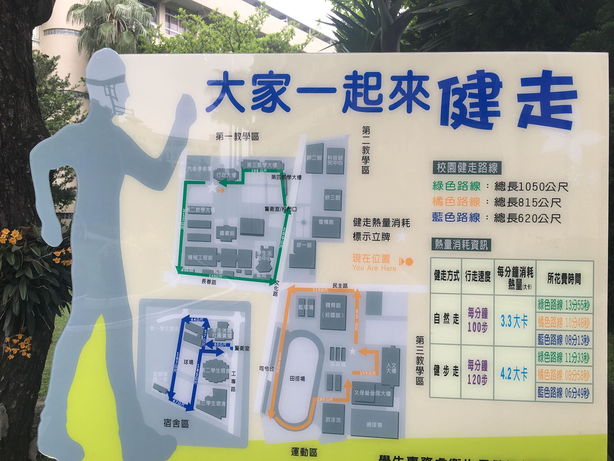 綠色路線:第一教學區外圍,總長約1050公尺(活動蓋章處:衛生保健組)