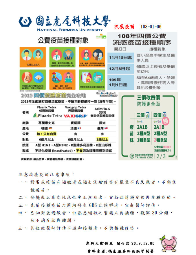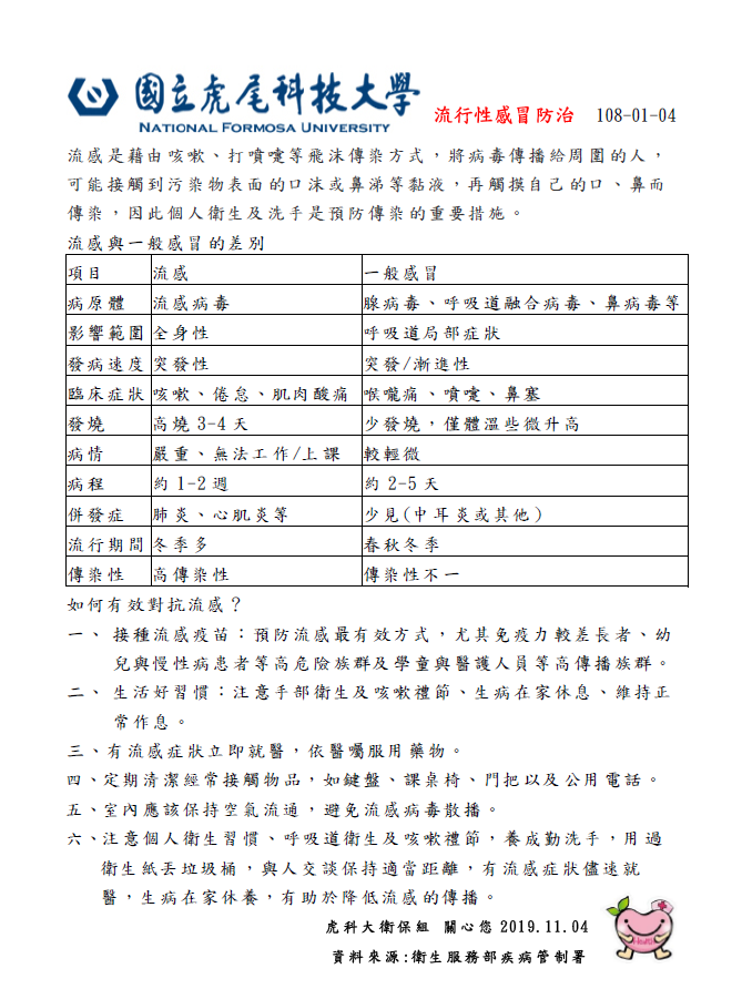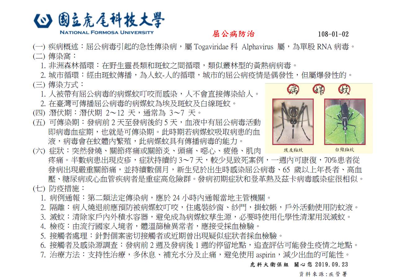由於傳染病種類時有變異,且相關預防或處理措施會因應不同傳染病而有更新,任何一種傳染病都可能在學校中發生。