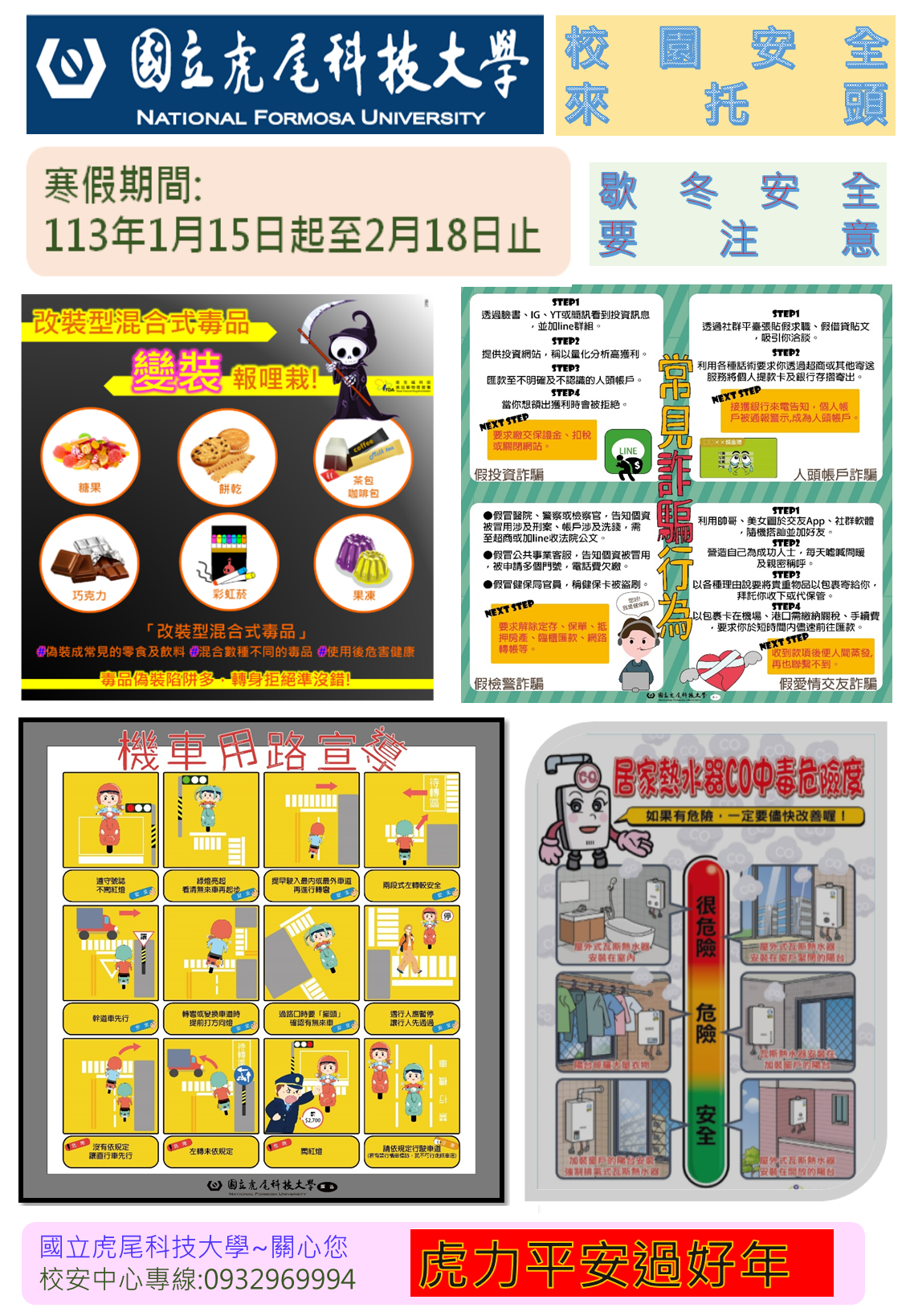 1.寒假將屆,為維護各位同學之健康及安全,請同學從事各項活動務必注意安全 2.家長連繫函請轉告給父母親或監護人知悉 3.敬祝幸福平安